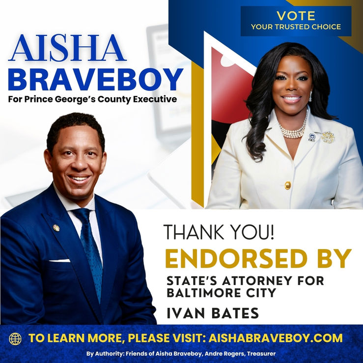 "Aisha Braveboy’s commitment to fighting for justice and her focus on public safety and community engagement makes her a trusted choice for County Executive. She is well-positioned to lead our county."
